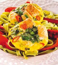 Laxomelett på spenatpasta