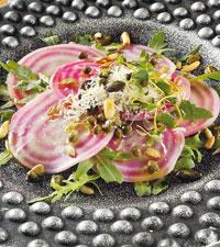 Polkabetscarpaccio med rostade frön