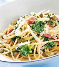 Fullkornsspagetti med spenat och parmaskinka