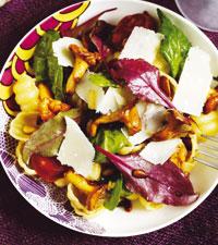 Pasta med chorizo och kantareller