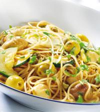 Spagetti med chilioliver och kapris
