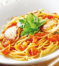 Spagetti med tomater och pilgrimsmusslor