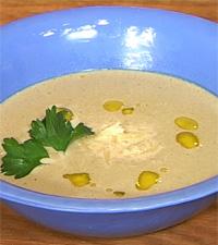 Trattkantarellsoppa med parmesan och sherry