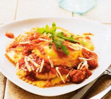 Fyllda pastakuddar med tomatsås, ost & basilika