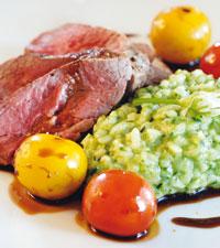 Lammrostbiff med ramslöksrisotto och körsbärstomater