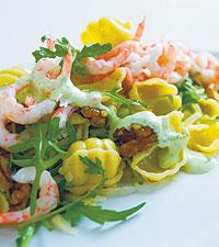 Pastasallad med räkor och basilikacreme