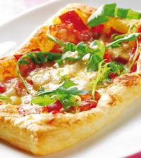 Enkel pizza med skinka och rucola