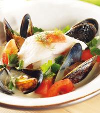 Frikassé på gös med blåmusslor och tomat