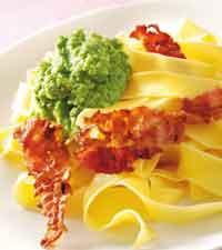 Pasta med bacon och ärtpesto