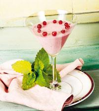 Lingonpannacotta med grönmyntablad