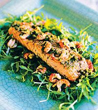 Stekt laxfilé serverad med kräftvinägrett