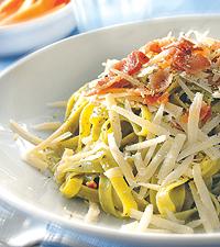 Fettuccine med räkor och grön pesto