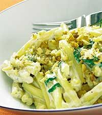 Pasta med pesto och salladskrabba