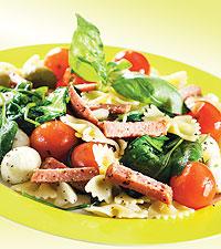 Pasta med salami och minimozzarella