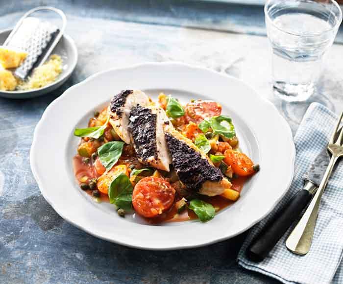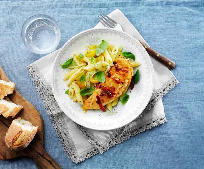 Kycklingbröstfilé med pasta, fänkål och basilika