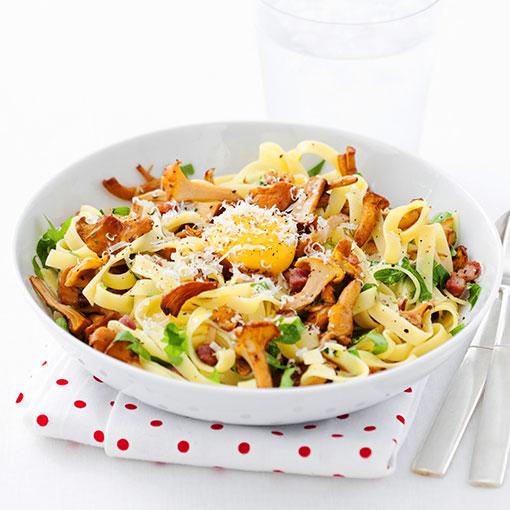 Pasta carbonara med kantareller