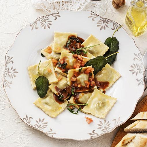 Ankleverravioli med örtig tryffelsky