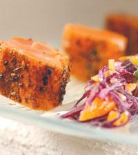 Sotad lax med aprikos- och rödkålssallad