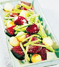 Glaserade rödbetor med smålök och haricots verts