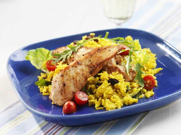 Stekt kycklingfilé med orientaliskt ris