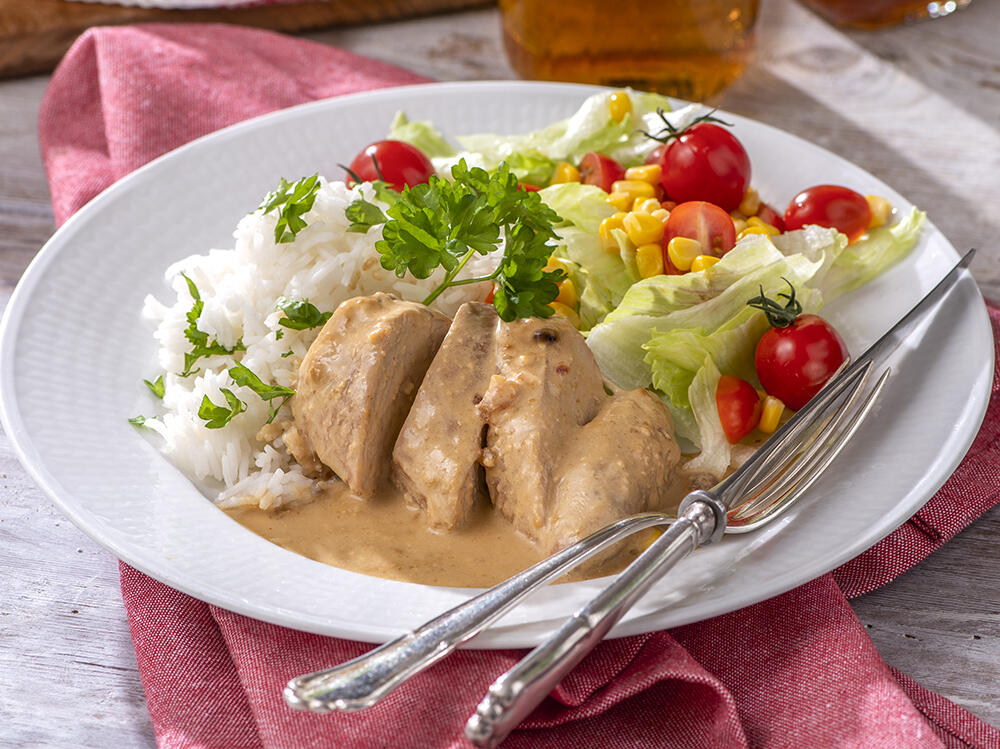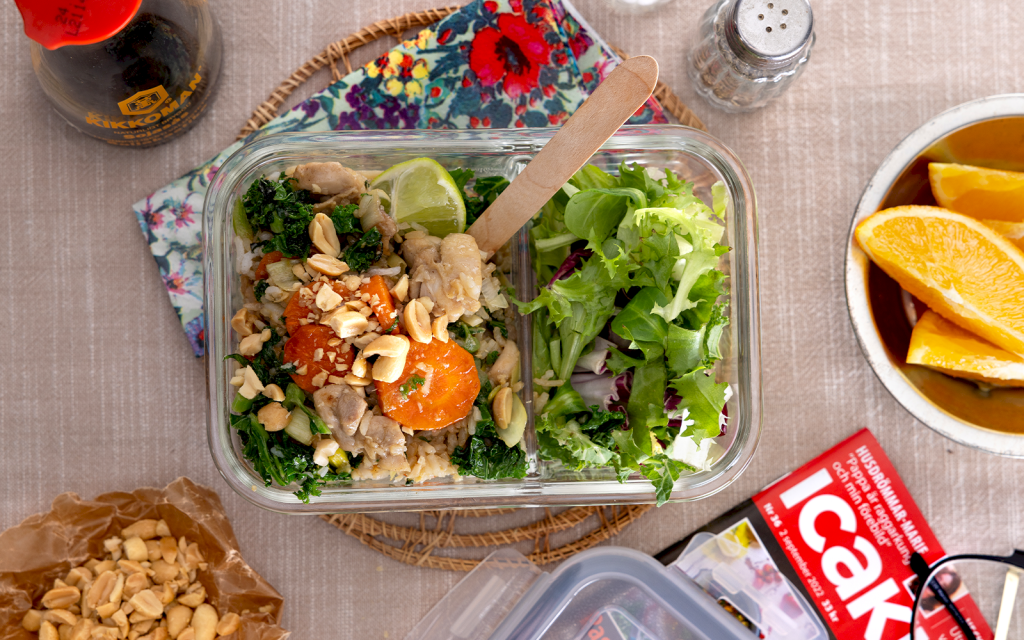 Kyckling i curry med sötsyrlig asiatisk sallad