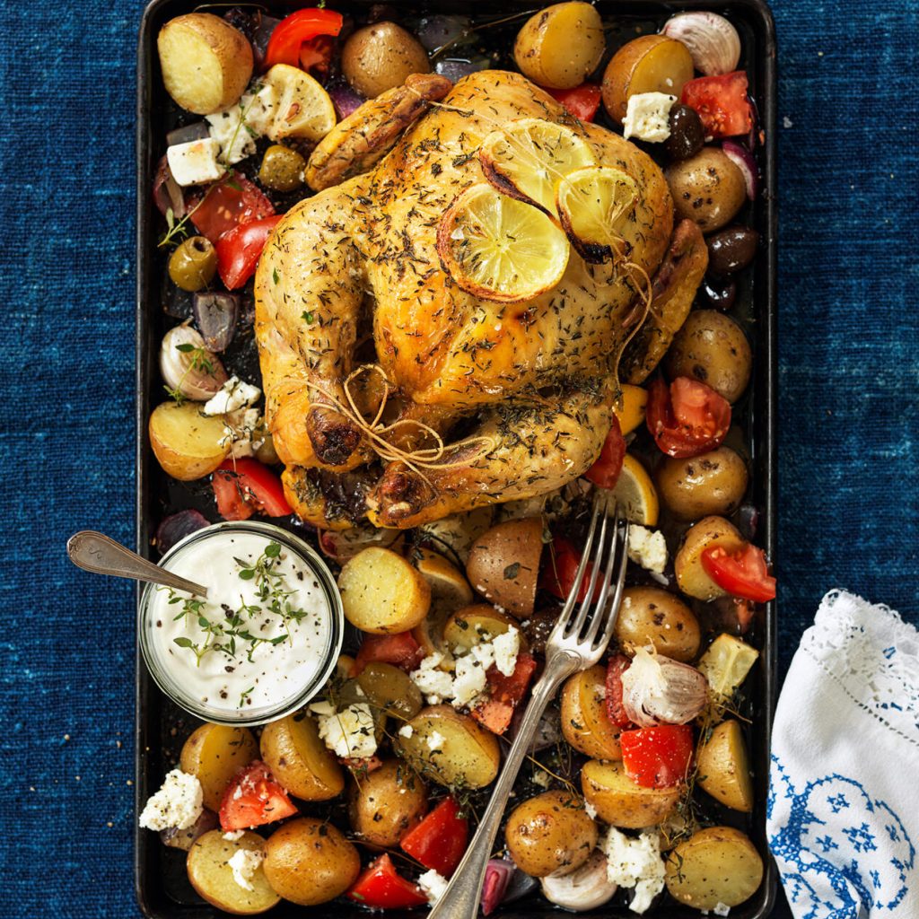 Helstekt kyckling med rostad potatis