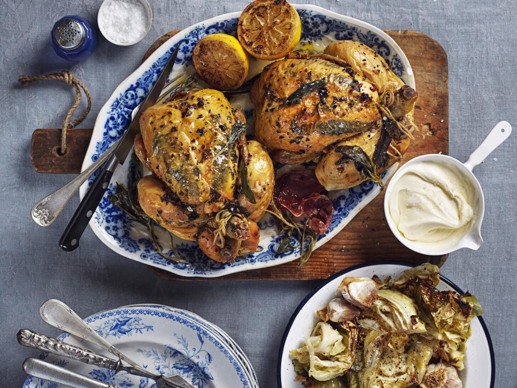 Hel ugnskyckling med salvia