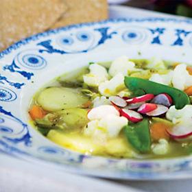 Varm trädgårdssoppa med sommarens primörer