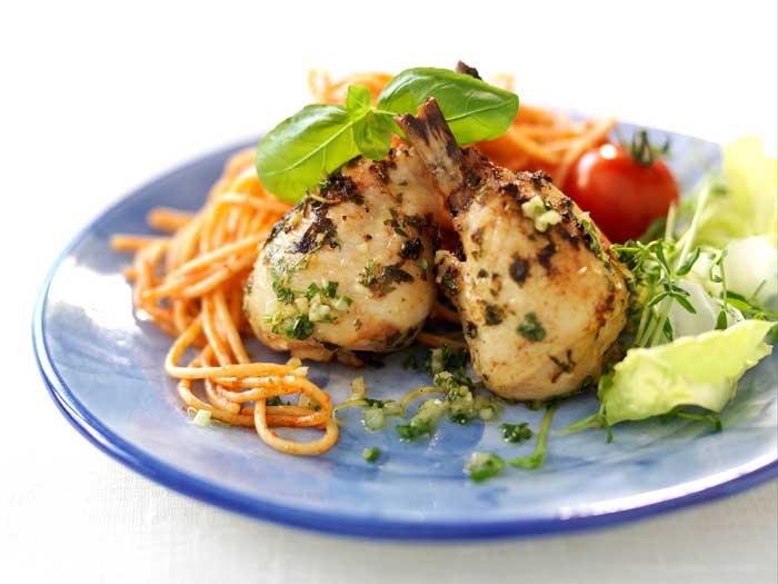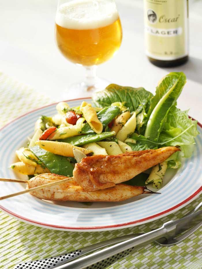 Pastasallad med grillspett