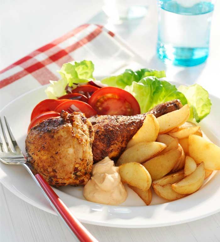 Hel kyckling med klyftpotatis
