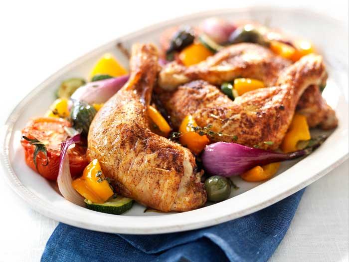 Kycklingben med ugnsbakade grönsaker