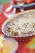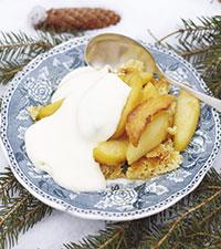 Calvadosdoftande äppelpaj med vaniljsås