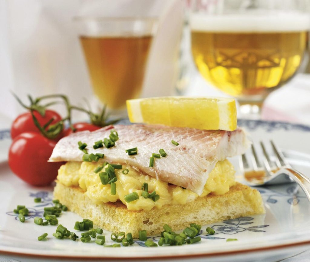 Varmrökt Vätternsik på toast med äggröra