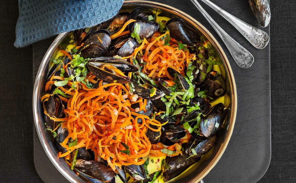 Morotsspaghetti med musslor