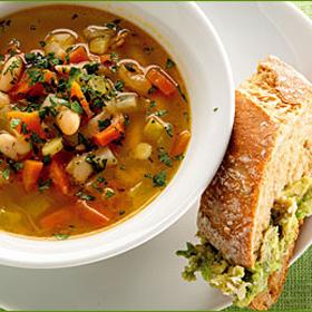 Minestronesoppa med avokadomacka