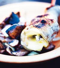 Eldbakat pinnbröd med brieost och varm svampsallad