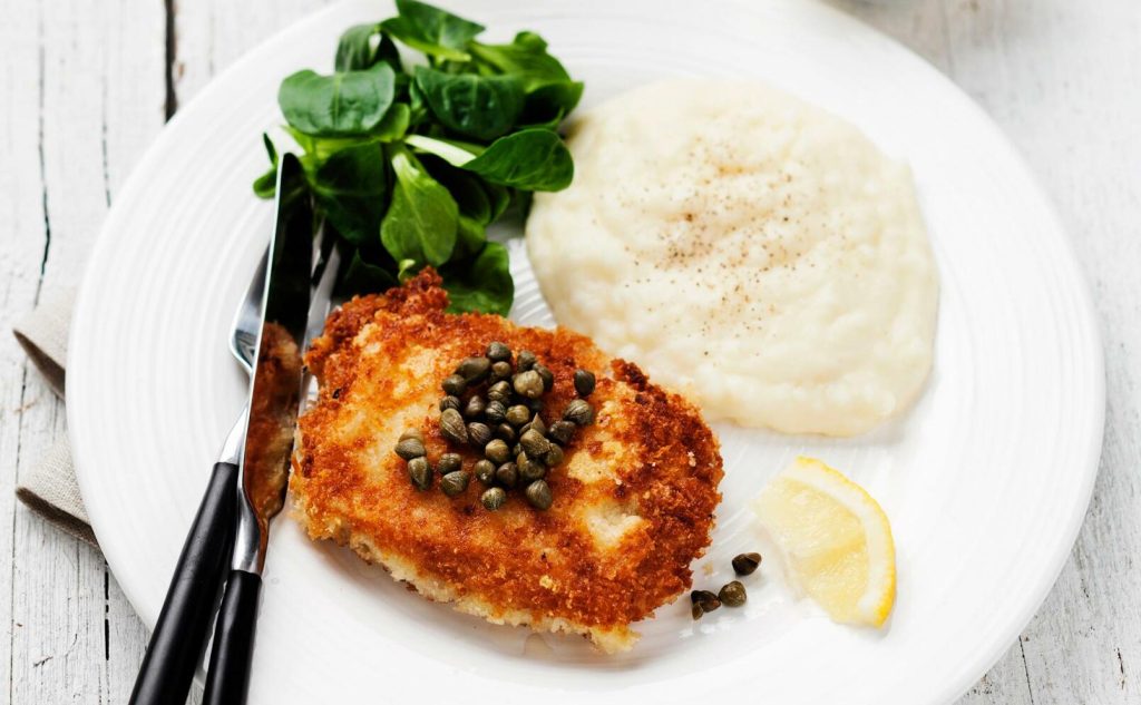 Fläskschnitzel med ost och kapris