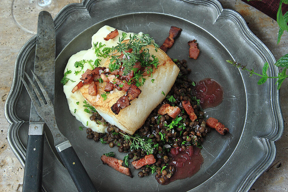 Festligt gott – Torskrygg, knaperstekt fläsk & rödvinssås