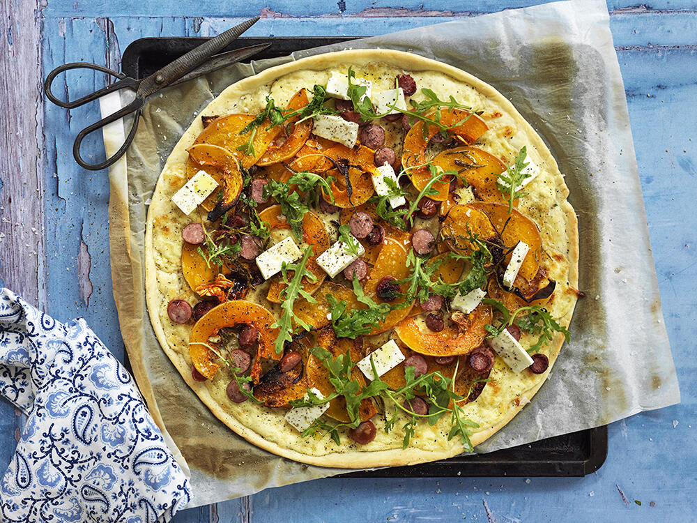 Direkt ur ugnen – Pizza bianca med pumpatopping