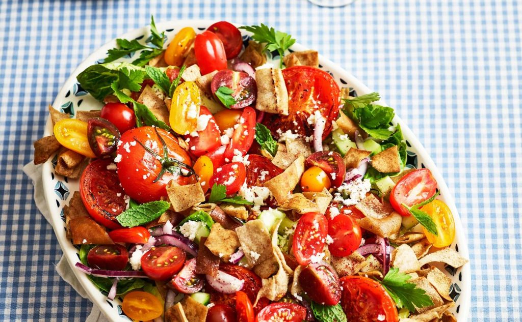 Tomatsallad fattoush med feta
