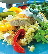 Grillad kyckling med couscousröra och vitlöksyoghurt