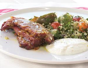 Grillad oxbringa marrakech med bulgursallad och citronyoghurt