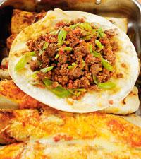 Smarriga enchiladas fyllda tortillarullar i ugn