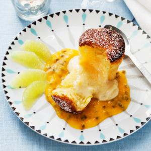 Vit chokladfondant med passionssås