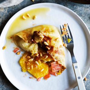 Crepes med apelsin och pinjenötter
