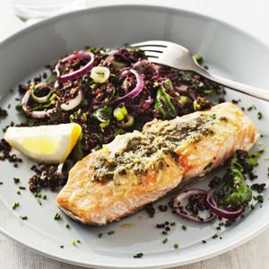 Pestolax i ugn med spenatquinoa