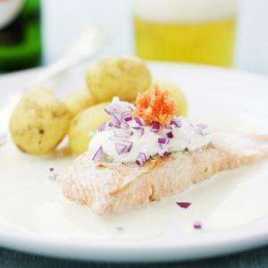 Stekt lax i krämig sås
