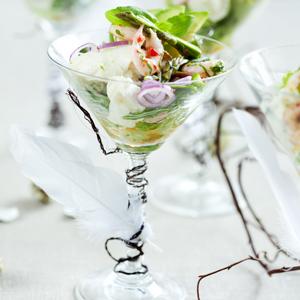 Räkcocktail med sparris, avokado och mozzarellaost