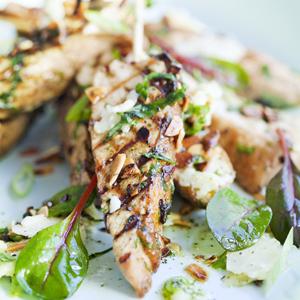 Kycklingspett med ramslök, prästost och mandel