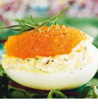 Ägghalvor med löjrom och rödlök